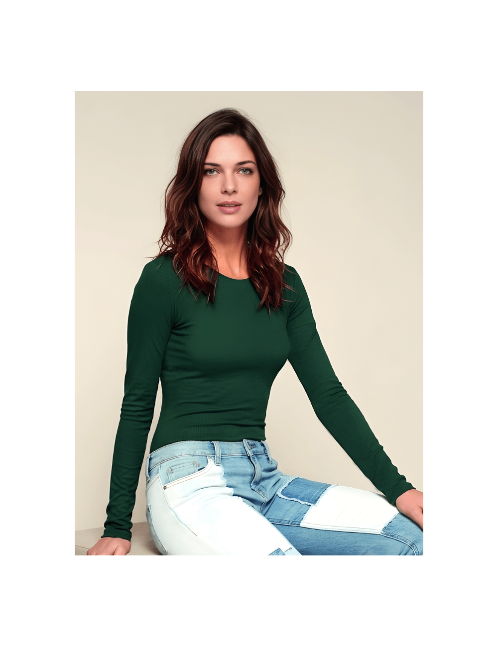 Cuenta con manga larga y un escote en U, ideal para estilizar la figura y combinar con distintos outfits.