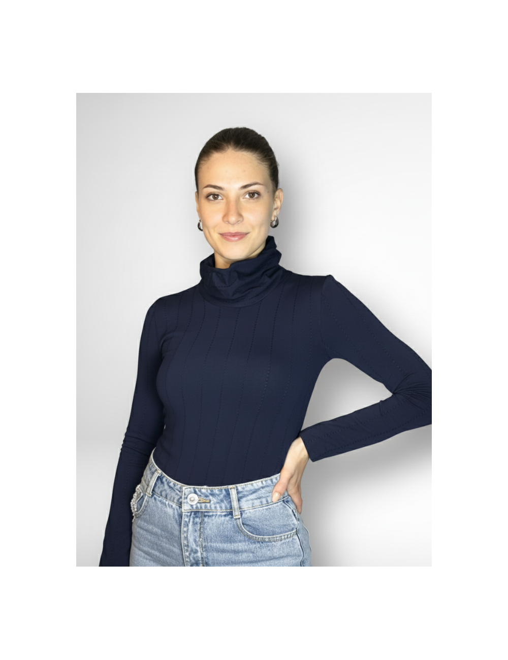 ✔ Cuello tortuga, estiliza el escote y aporta un toque elegante.